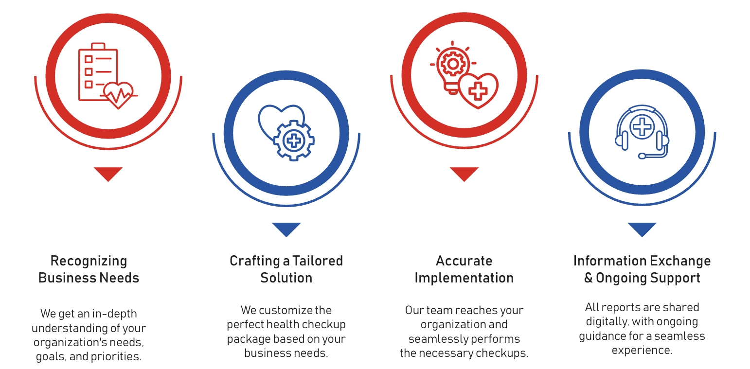 We offer comprehensive health checkups designed to suit your company’s requirements. They include: